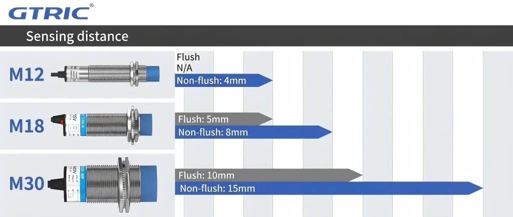 Inductive sensors are susceptible to interference from surrounding non-target metals, so the installation methods are mainly divided into two types: